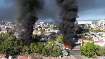 Au sol, on distingue des véhicules en feu, dont des autobus et des camions. « Des gens arrivent à moto avec des bidons d’essence, arrêtent les voitures ou les semi-remorques qui bloquent les principaux carrefours, versent l’essence et y mettent le feu pour semer le chaos. Et donc, la ville est pratiquement paralysée. », expliquait hier, Patrick, un habitant de Puerto Vallarta, interrogé par la chaîne de télévision américaine CBS News.